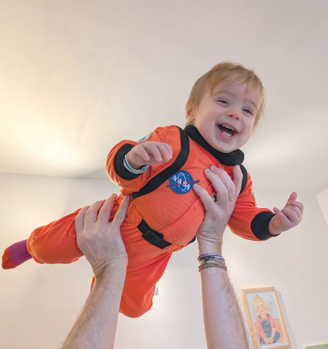 Quant au petit bonhomme, il a enfilé la belle combinaison d’astronaute ramenée de New York par Arielle et Olivier. Elle lui va comme un gant, il est magnifique !