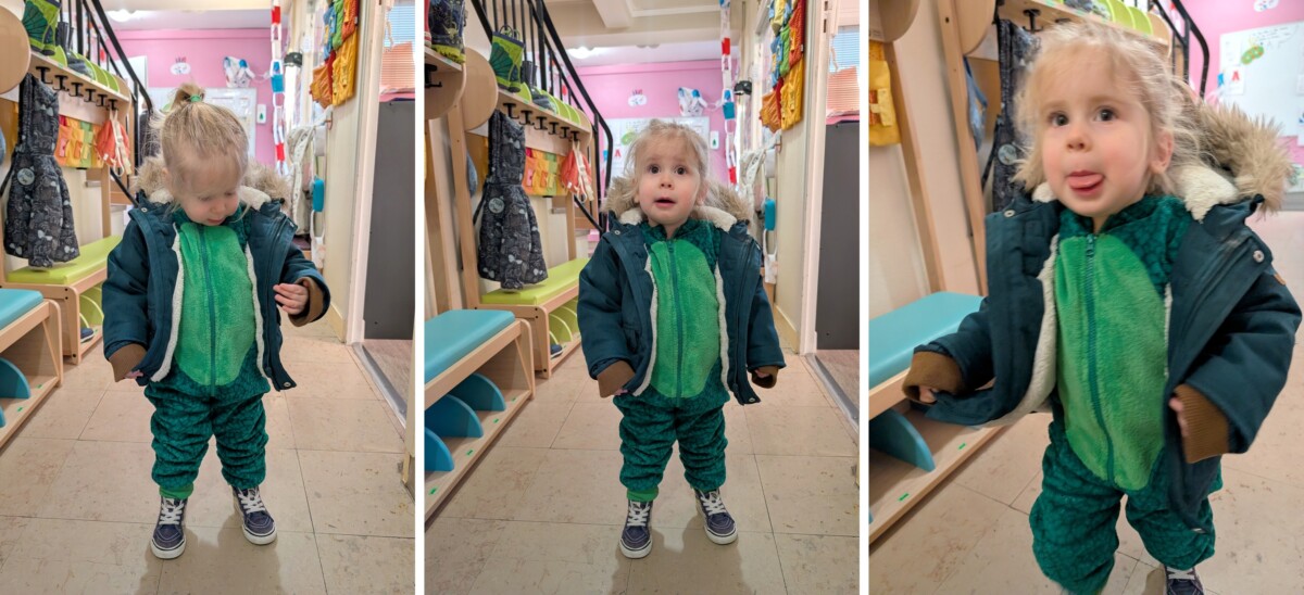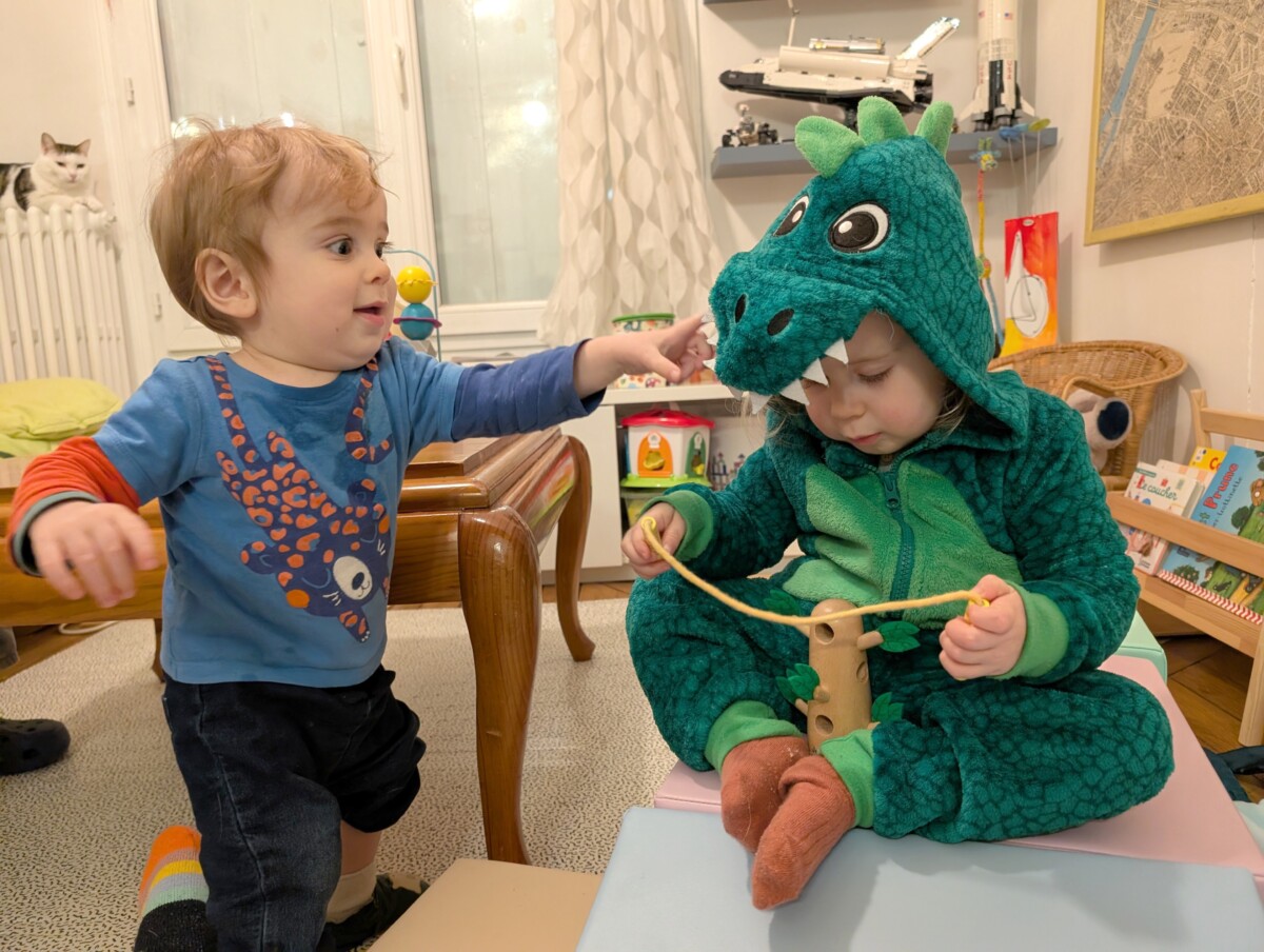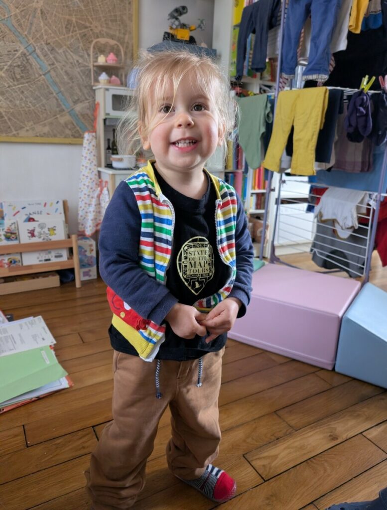 En arrivant, tous les enfants étaient individuellement prix en photo par l’équipe de la crèche, ce qui est rarissime. On nous a promis qu’on aurait la séance diapo, un jour : on a hâte !