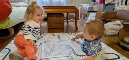 Il y a deux semaines, c’était la Semaine nationale de la Petite Enfance. Ne nous demandez pas en quoi ça consiste, mais le thème cette année était apparemment « le jeu ». La crèche d’Ellie a organisé des ateliers tous les matins de la semaine, pour jouer entre parents et enfants. Moi je suis venue un matin jouer au « sable magique » (de la pâte à crumble avec de l’huile et de la farine) pour faire des pâtés, et Vincent est venu un autre matin pour faire de la patouille d’eau et de savon.