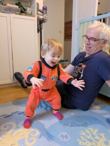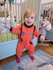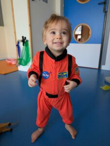 Quant au petit bonhomme, il a enfilé la belle combinaison d’astronaute ramenée de New York par Arielle et Olivier. Elle lui va comme un gant, il est magnifique !
