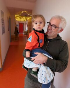 En arrivant, tous les enfants étaient individuellement prix en photo par l’équipe de la crèche, ce qui est rarissime. On nous a promis qu’on aurait la séance diapo, un jour : on a hâte !