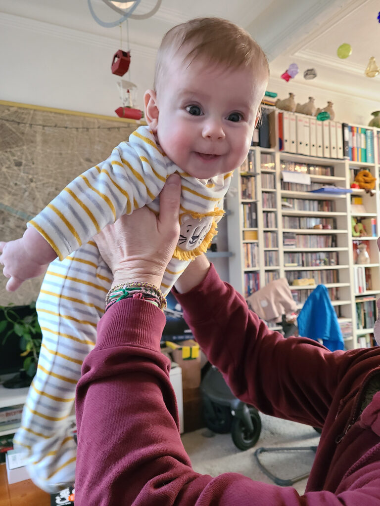 Carole a fait plein de compliments, vendredi. Elle raconte qu’Ellie a une jolie petite danse quand on met de la musique, qu’elle veut mettre et enlever ses chaussures seule, qu’elle parle bien, mange bien et se débrouille bien avec ses couverts… et qu’elle se débrouillera donc très bien à la rentrée, quand elle passera chez les « grands » de la crèche !