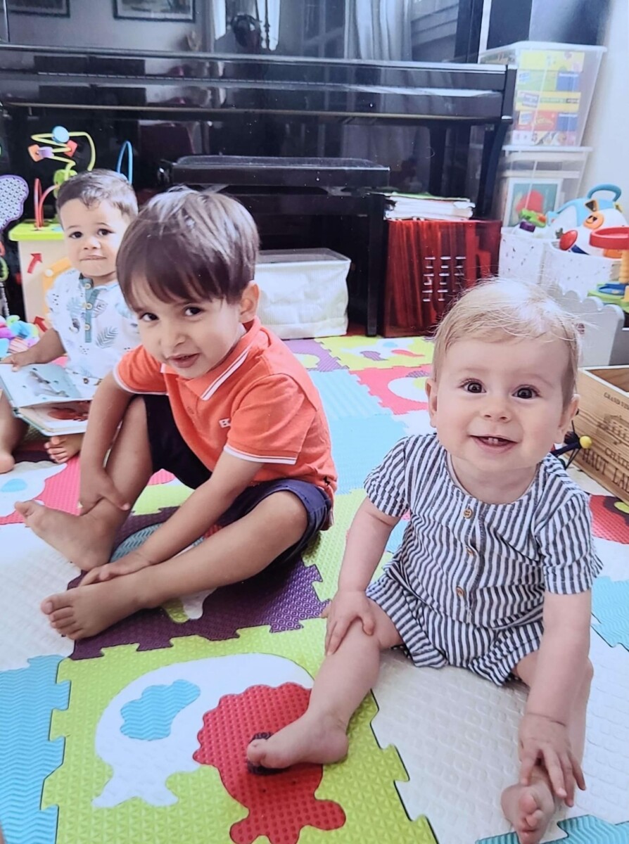 Josiane, l’assistante maternelle d’Ellie, nous a offert cette photo en souvenir de la petite bande 2023-2024 ! Au centre, c’est Marcus, qui rentre à l’école maternelle et ne viendra plus. A gauche, c’est Noah (1 an et demi), qui va continuer à venir mais pas tous les jours.