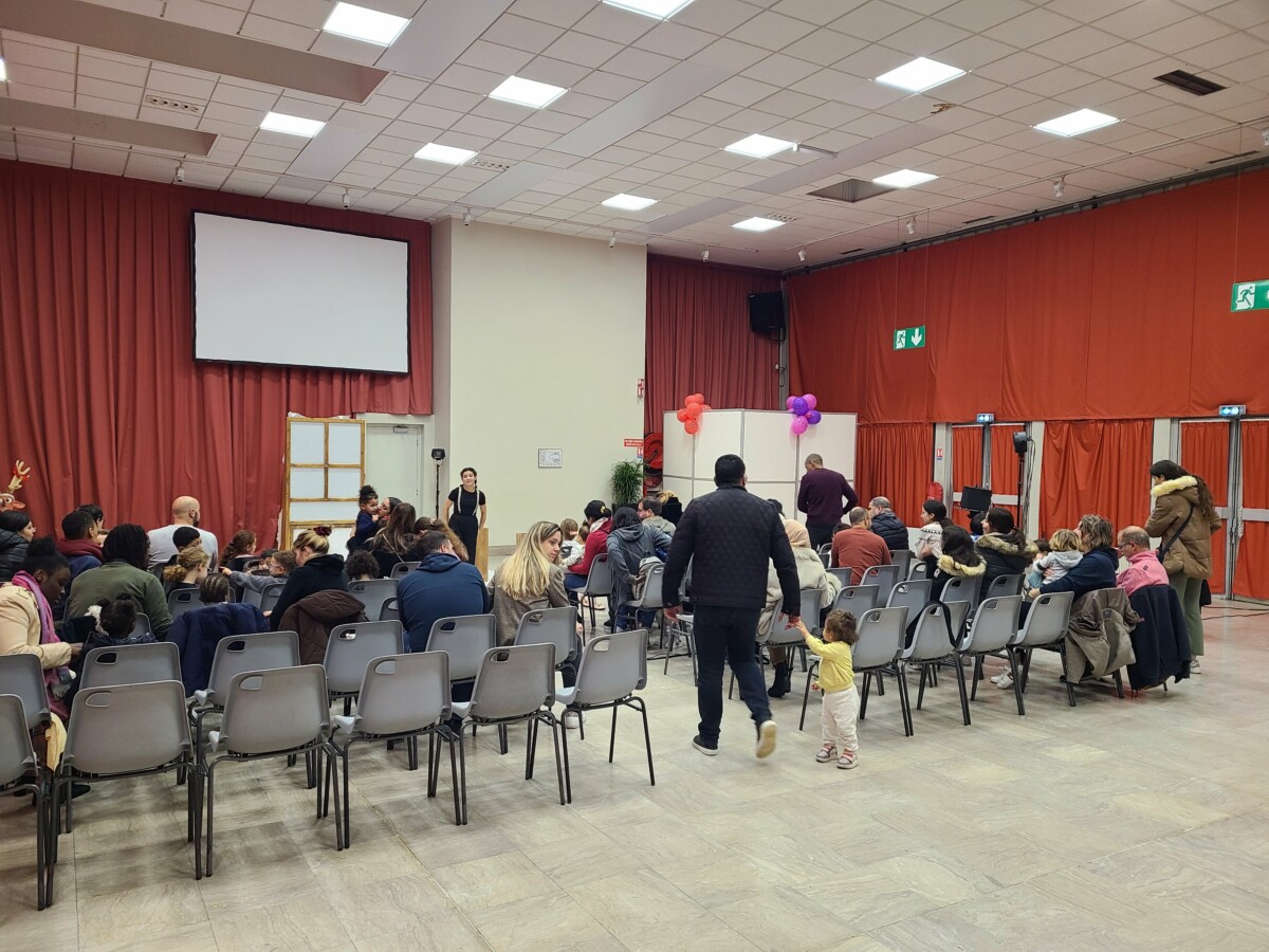Ce soir, la crèche a organisé sa petite fête de Noël au théâtre, juste derrière la maison.
